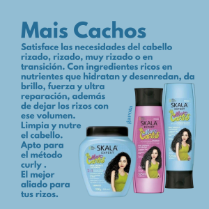 La línea #MaisCachos fue especialmente desarrollada para cubrir las necesidades de cabellos rizados, rizados, encrespados o en transición. Con ingredientes ricos en nutrientes que hidratan y desenredan, da brillo, fuerza y ultra reparación, además de dejar los rizos mostrando ese volumen.