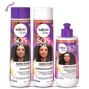 HomeTienda SALON LINE S.O.S. CACHOS CHAMPU 300 ML , ACONDICIONADOR SUPER OLEOS NUTRITIVOS 300ML Y CREMA DE PEINAR 300 ML